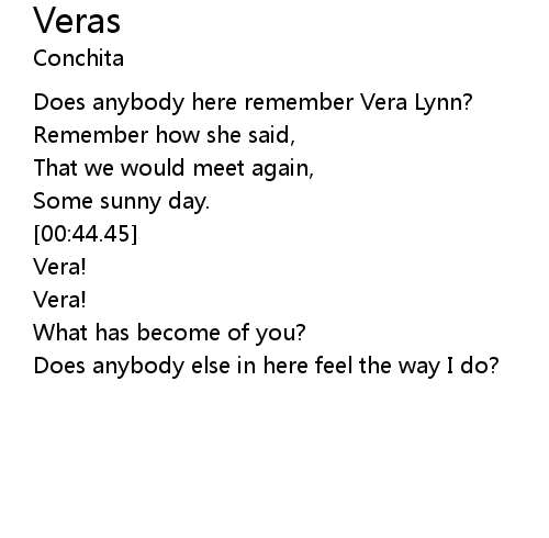 | [00:22.31] | Does anybody here remember Vera Lynn? |