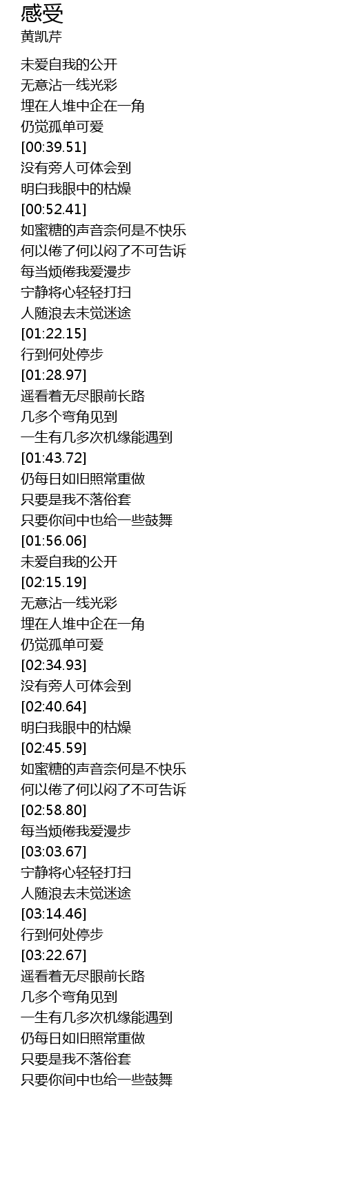 | [00:41.29] | 没有旁人可体会到 |