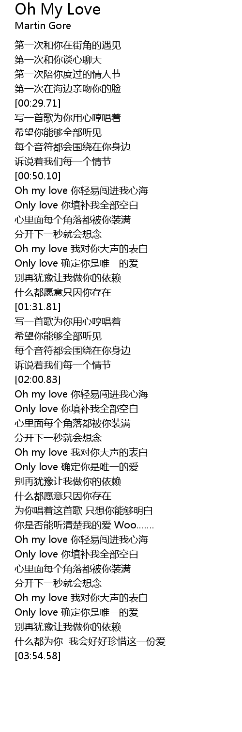 | [03:24.33] | Oh my love wo dui ni da sheng de biao bai |