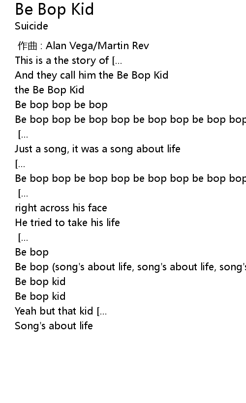 | [00:25.75] | And they call him the Be Bop Kid |