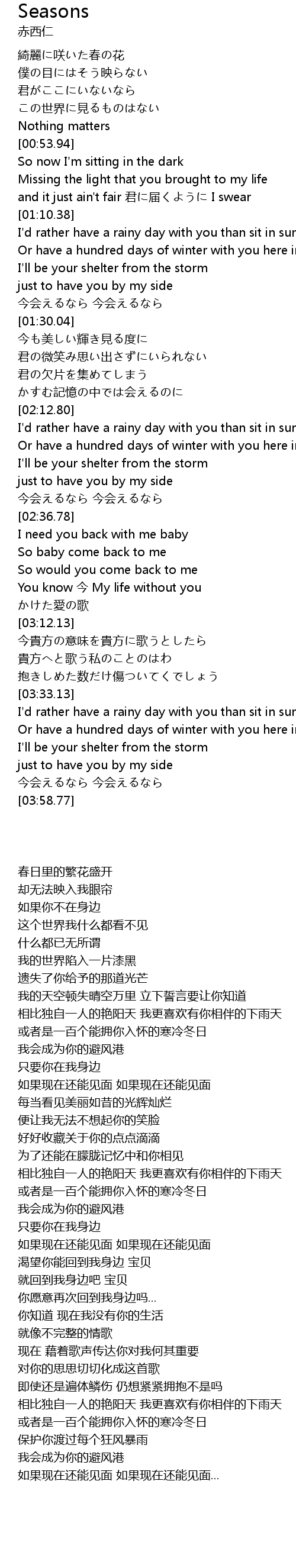 | [03:39.36] | Or have a hundred days of winter with you here in my arms |