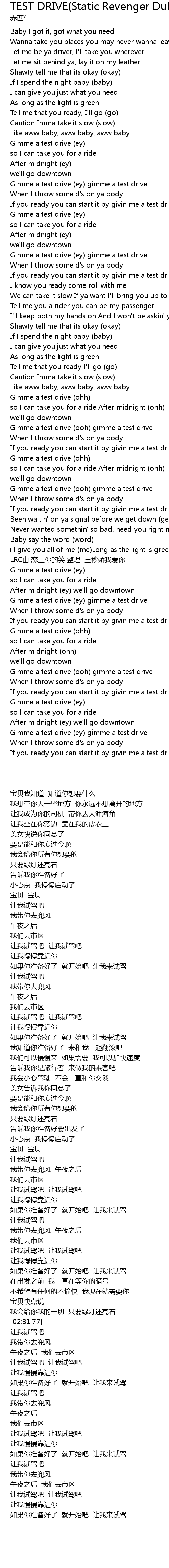 | [03:06.77] | Gimme a test drive (ooh) gimme a test drive |