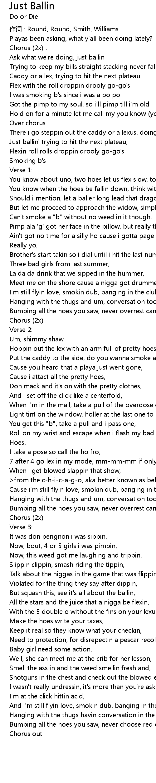 | But squash this, see it's all about the ballin, | |
