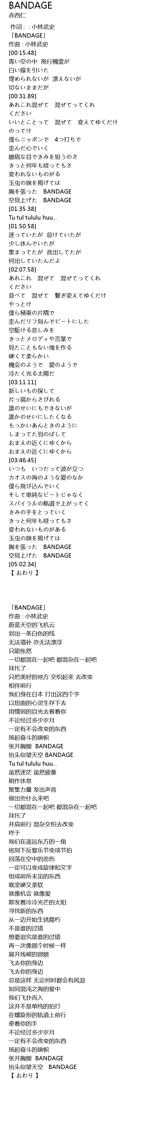 | [00:01.48] | 「BANDAGE」 |