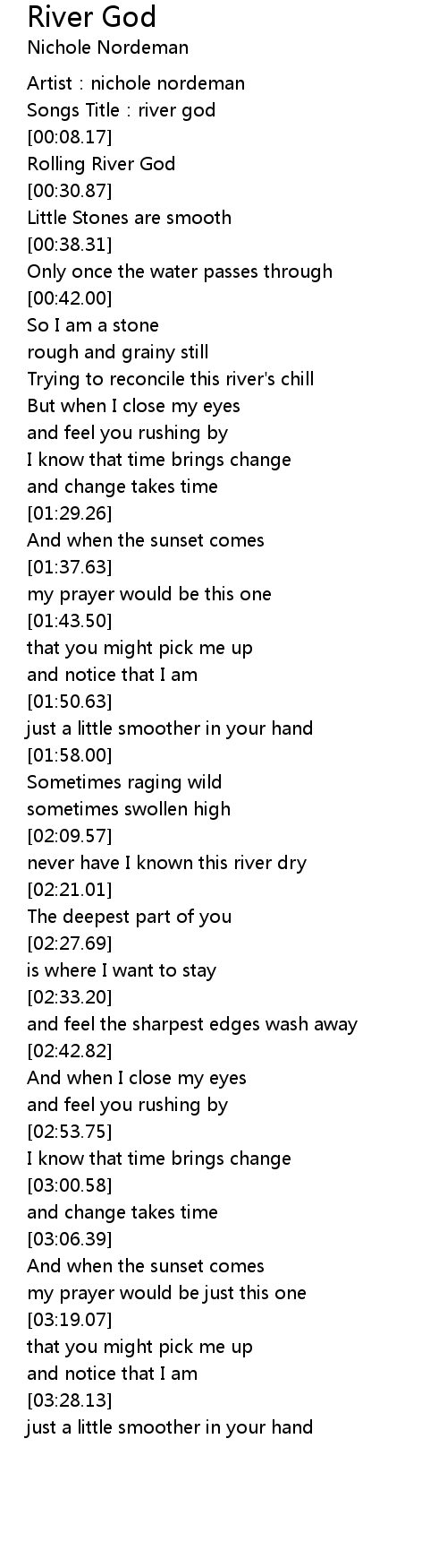 | [01:02.92] | Trying to reconcile this river' s chill |