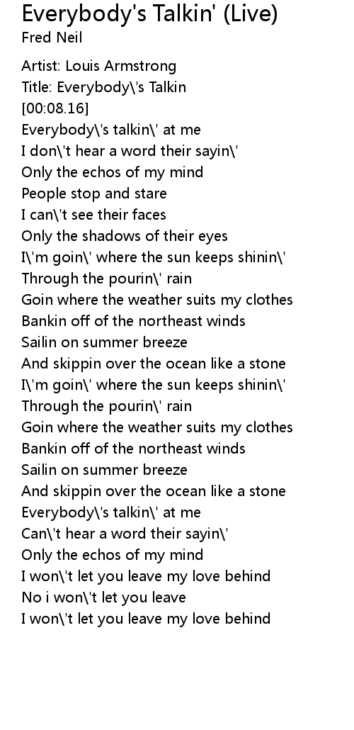 Everybody's Talkin' (Live) Lyrics