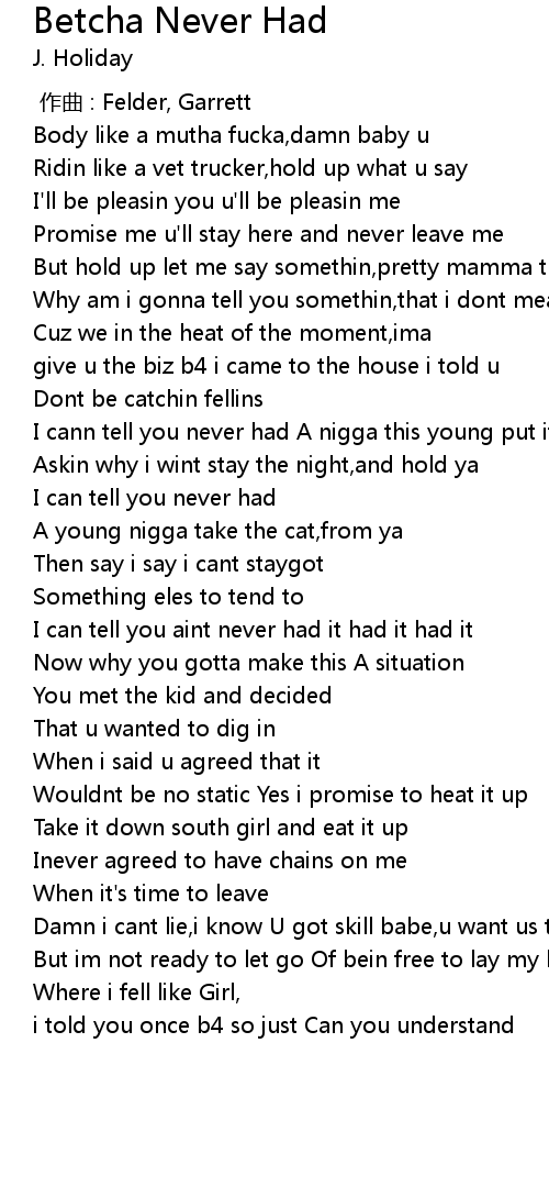 | Song | Betcha Never Had |