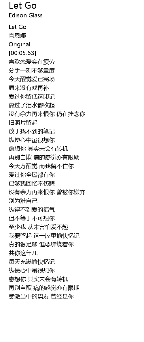| [00:02.01] | Let Go |