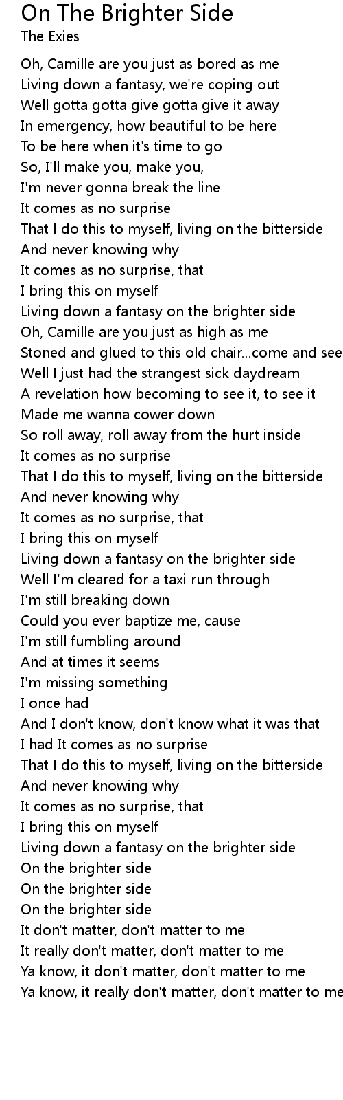 | That I do this to myself, living on the bitterside | |