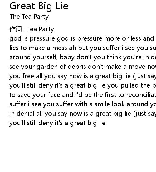 | god is pressure god is pressure more or less and it takes a lifetime a life of lies to make a mess ah but you suffer i see you suffer with a smile well look around yourself, baby don' t you think you' re in denial and it hurts so bad to see your garden of debris don' t make a move now it could be the thing that sets you free all you say now is a great big lie just say you didn' t mean and you' ll still deny it' s a great big lie you pulled the plug you pulled the plug to save your face and i' d be the first to reconciliate the grace ah but you suffer i see you suffer with a smile look around yourself don' t you think you' re in denial all you say now is a great big lie just say you didn' t mean and you' ll still deny it' s a great big lie |