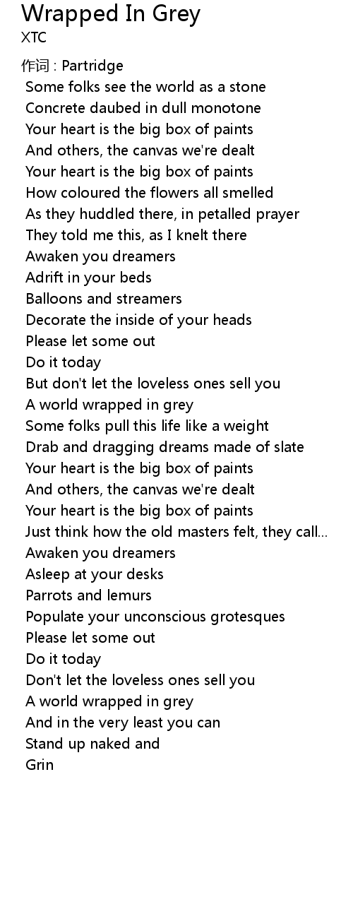 | Song | Wrapped In Grey |