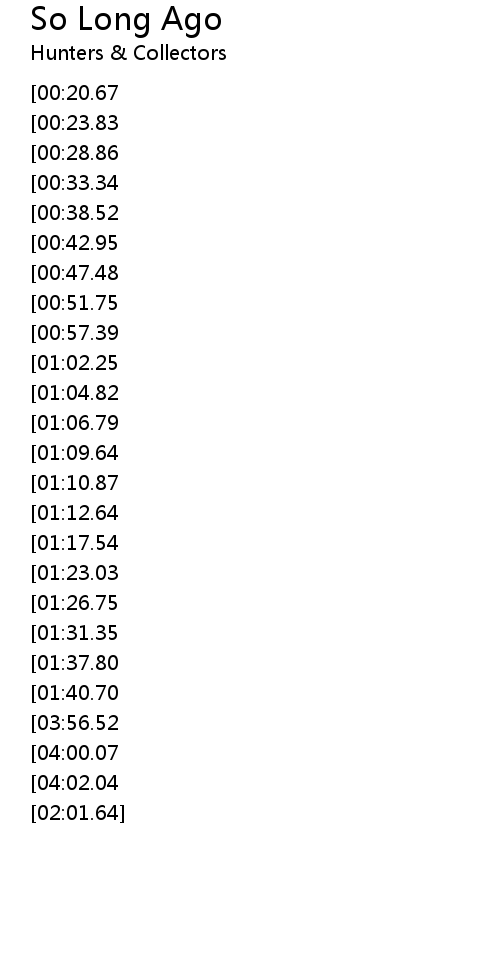 | [02:29.36][00:20.67] | SO LONG BEEN WAITING SO LONG |