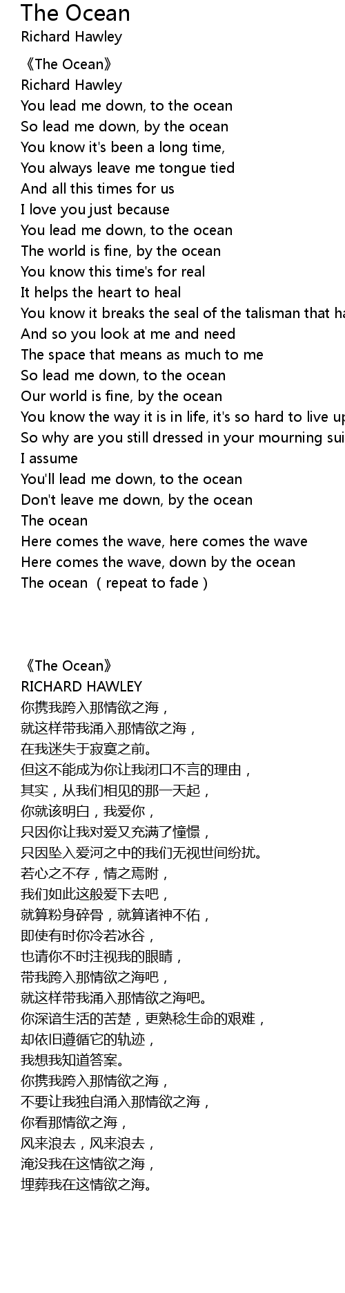 | [02:52.06] | You' ll lead me down, to the ocean |