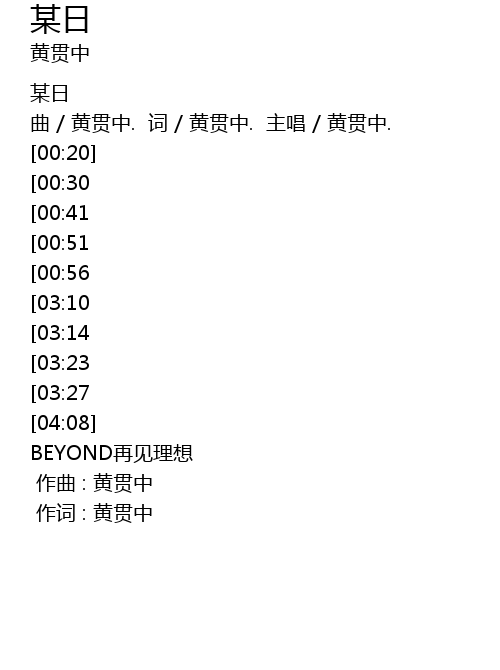 | [00:10] | 曲 / 黄贯中. 词 / 黄贯中. 主唱 / 黄贯中. |