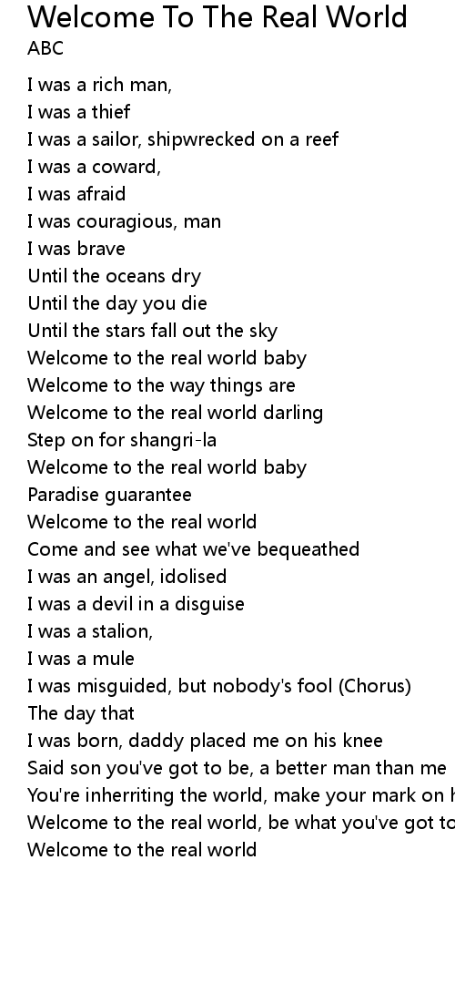 Welcome to the real world, be what you've got to be |