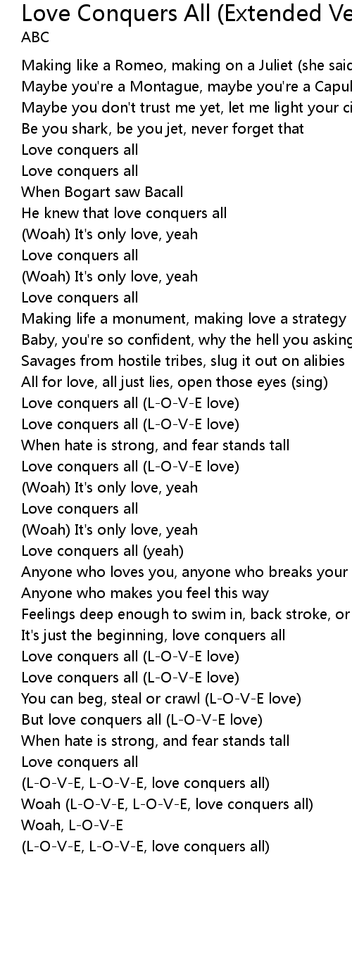 (L-O-V-E, L-O-V-E, love conquers all) |