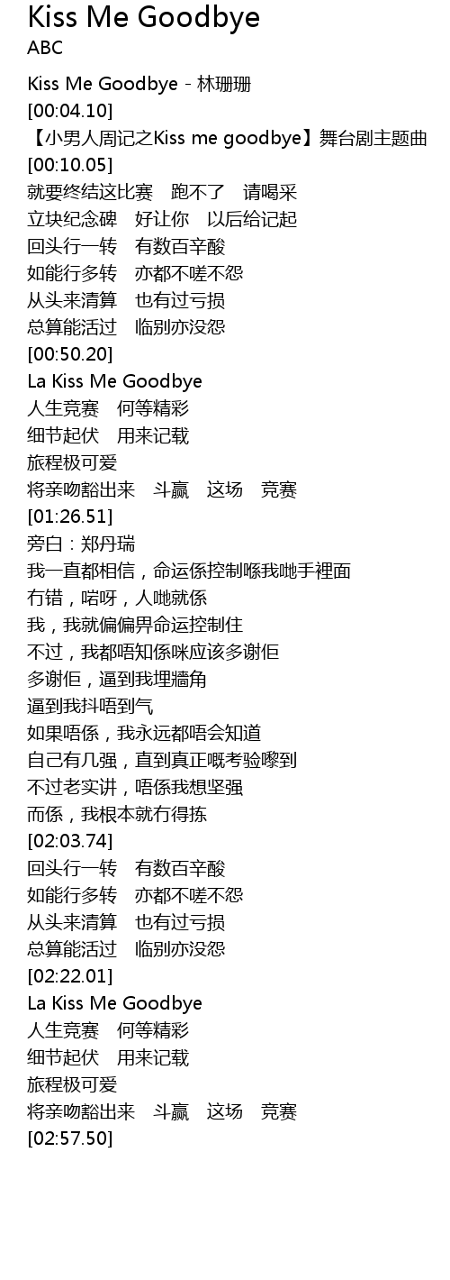 | [00:02.70] | Kiss Me Goodbye lin shan shan |