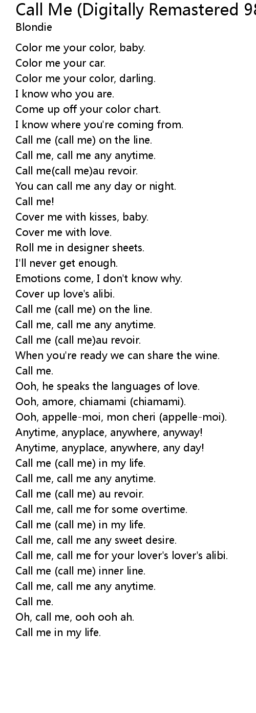 Ooh, appelle-moi, mon cheri (appelle-moi). |