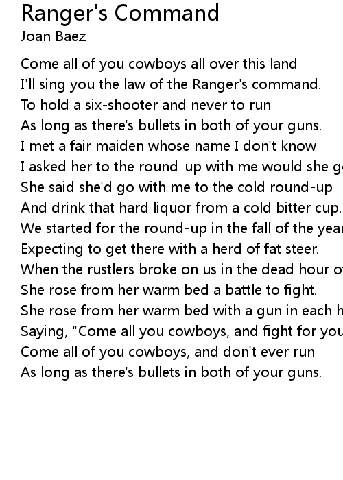 I'll sing you the law of the Ranger's command. |