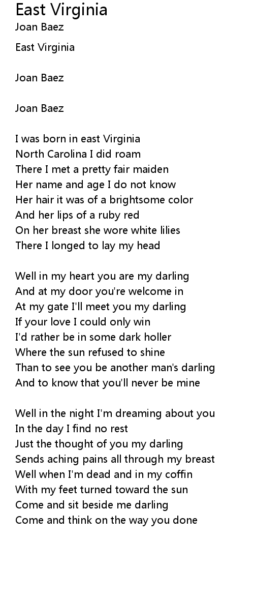 | [00:07.78] | I was born in east Virginia |