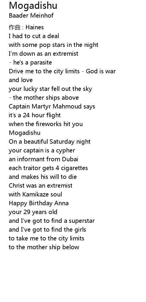 | Song | Mogadishu |