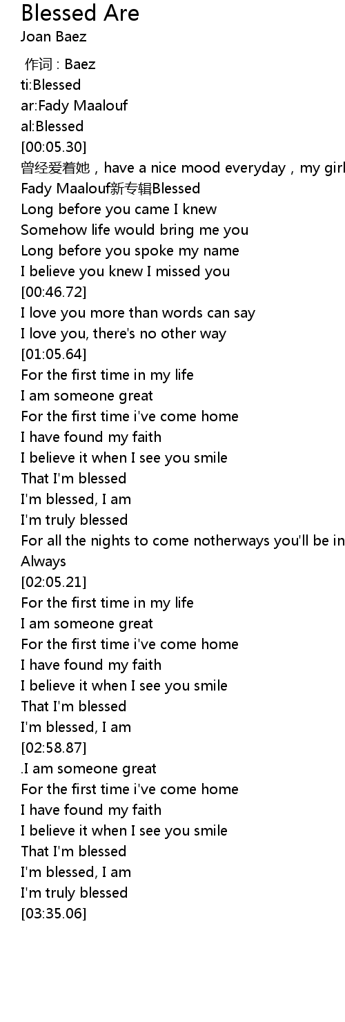 | [00:06.63] | Fady Maalouf xīn zhuān jí Blessed |