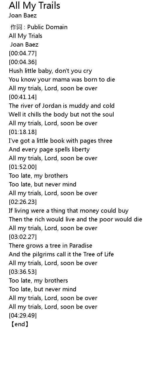 | [00:00.98] | All My Trials |