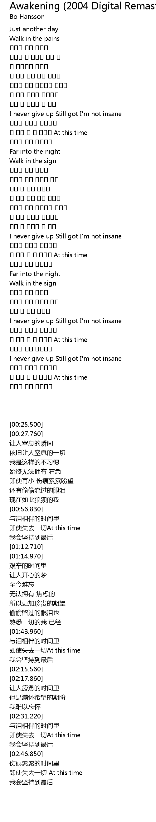 | [02:31.220] | I never give up Still got I' m not insane |