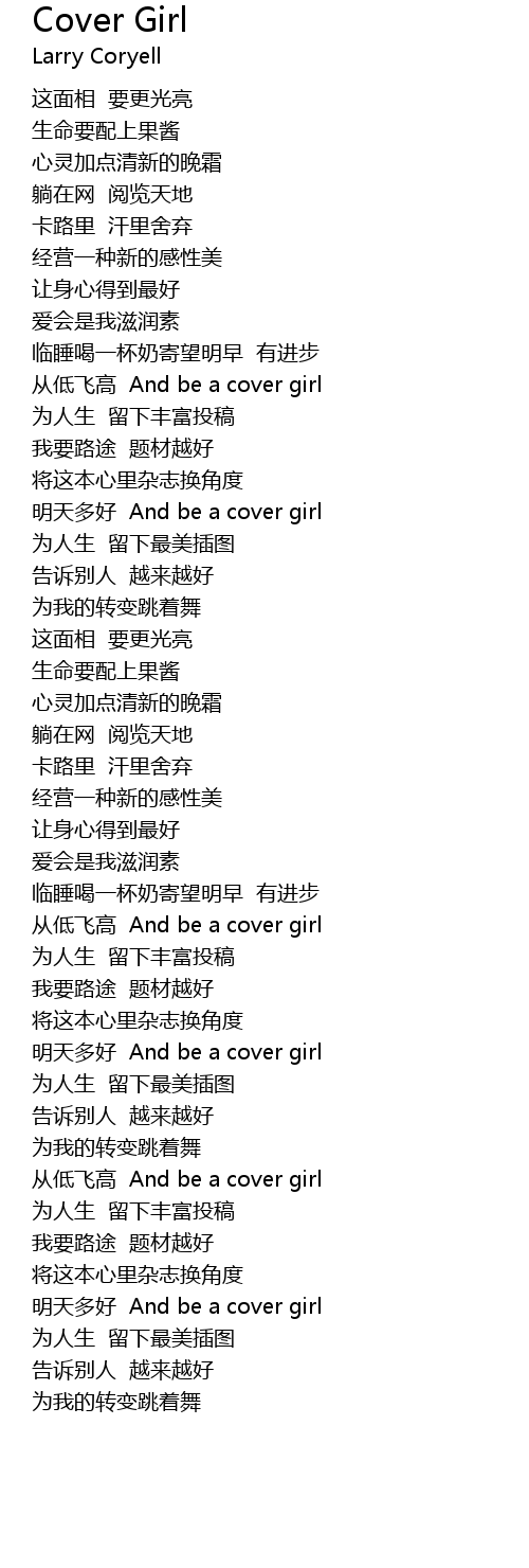 | [00:58.65] | 从低飞高 And be a cover girl |