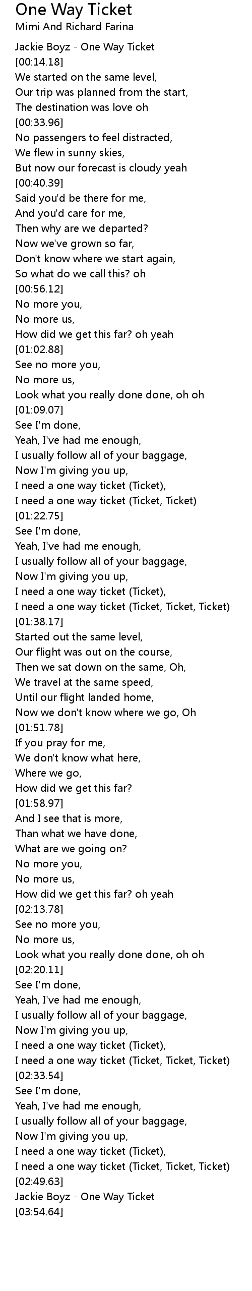 I need a one way ticket (Ticket, Ticket, Ticket) |