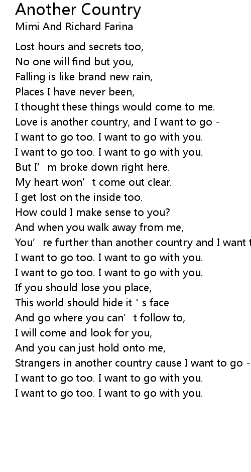 | [03:10.84] | Strangers in another country cause I want to go - |