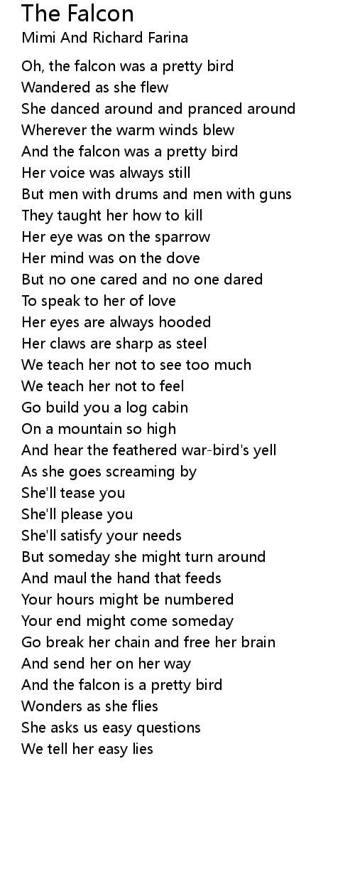 Oh, the falcon was a pretty bird |