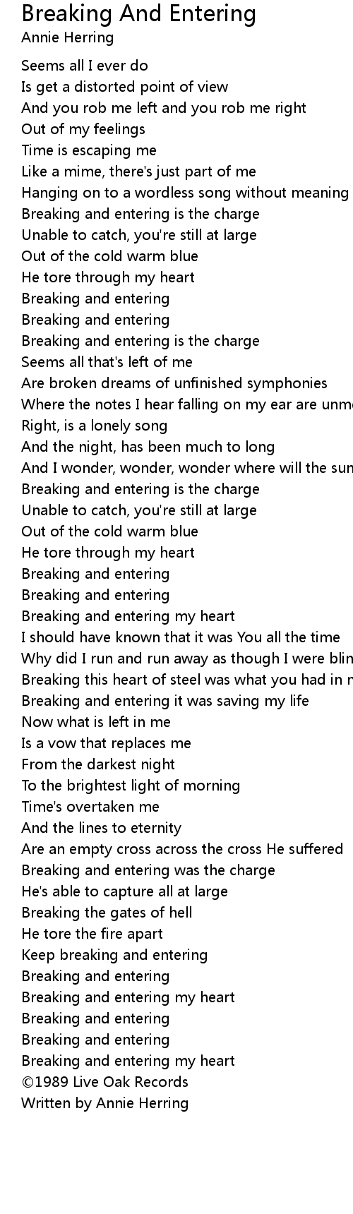 | Breaking and entering it was saving my life | |