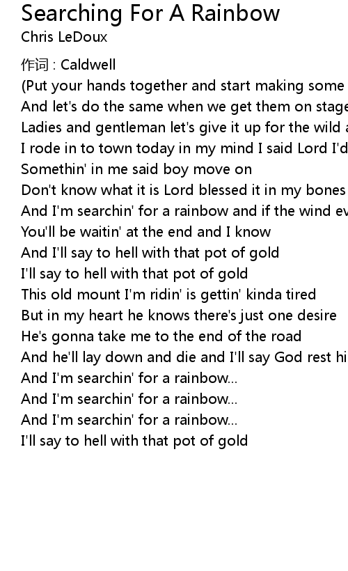 | And I' m searchin' for a rainbow and if the wind ever shows me where to go | |