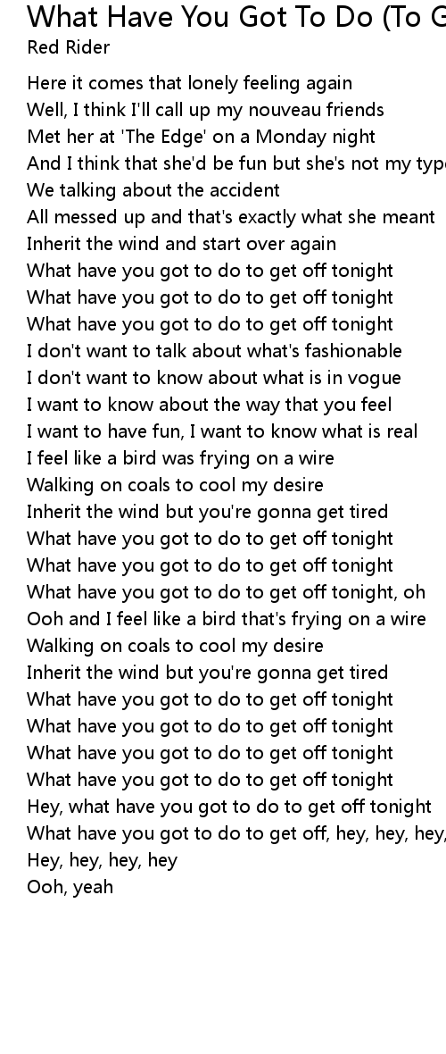 What have you got to do to get off tonight |