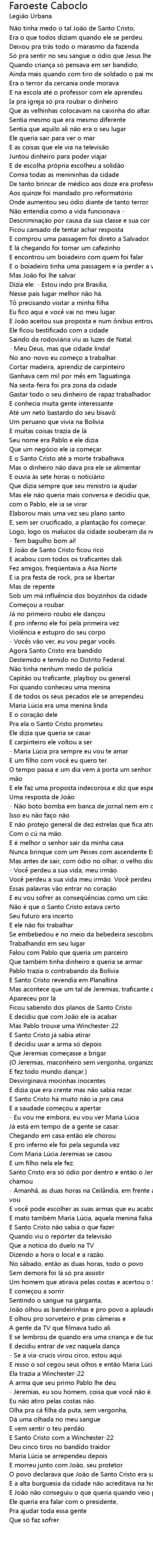 | Santo Cristo era só ó dio por dentro e ent o o Jeremias pra um duelo ele chamou | |