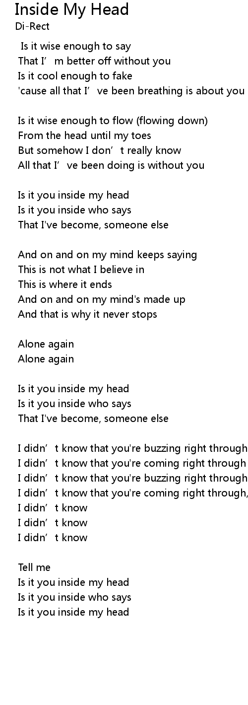 | I didn' t know that you' re coming right through inside my head | |