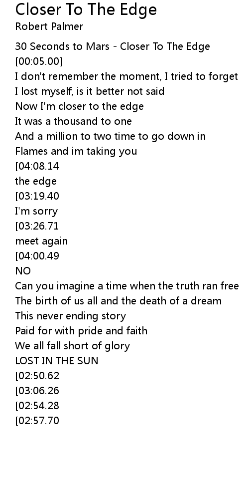 [04:21.60][04:08.14][04:01.87][03:54.73][03:48.14][01:47.66][00:53.02] Closer to the edge