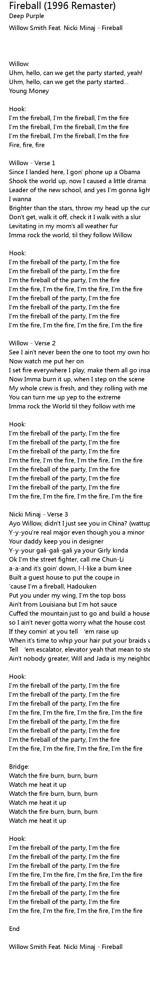 | Willow Smith Feat. Nicki Minaj - Fireball | |