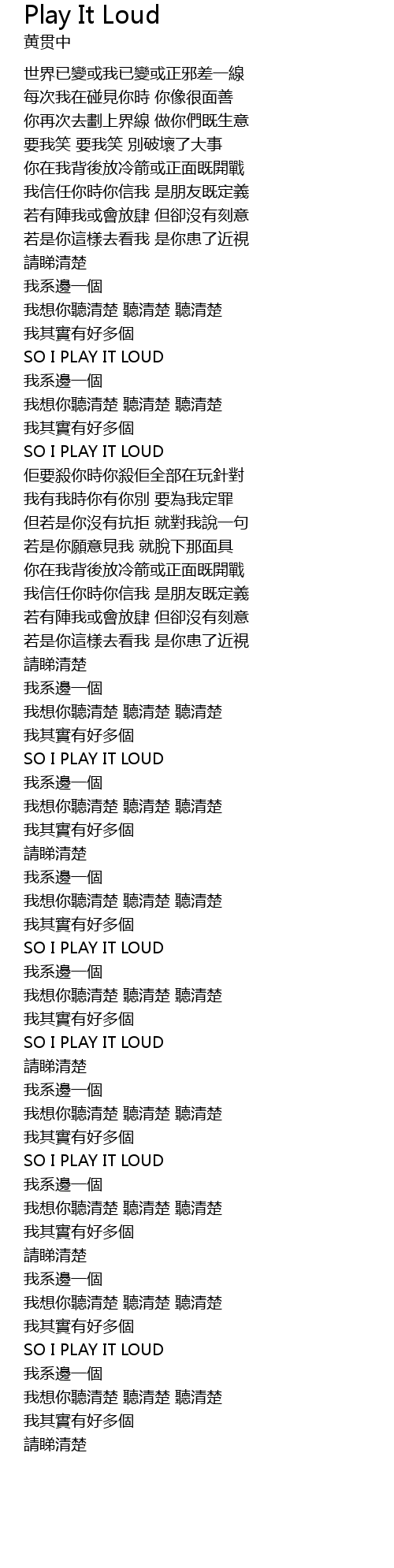 | [03:31.67] | SO I PLAY IT LOUD |