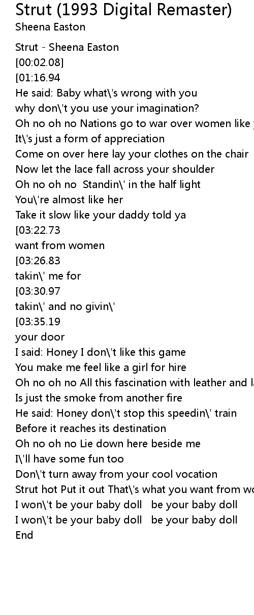 [03:39.77][03:22.73][00:59.11][03:04.90] Strut hot Put it out That\'s what you want from women