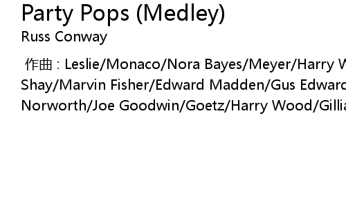 | [00:00.000] | 作曲 : Leslie/Monaco/Nora Bayes/Meyer/Harry Woods/Larry Shay/Marvin Fisher/Edward Madden/Gus Edwards/Mort Dixon/Wenrich/Jack Norworth/Joe Goodwin/Goetz/Harry Wood/Gillian Jerome/J Mahoney |