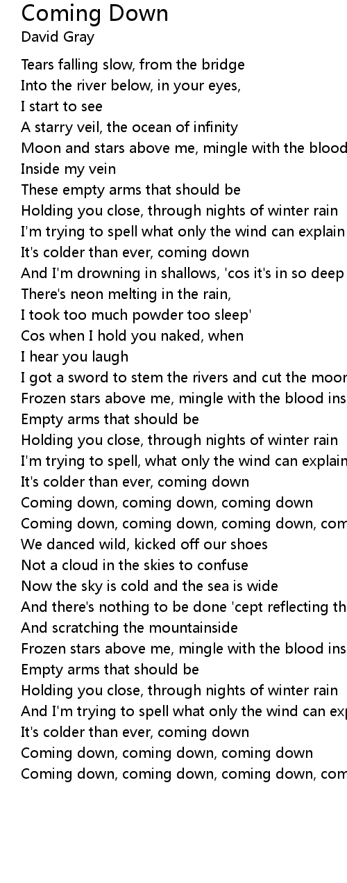 Coming down, coming down, coming down, coming down |