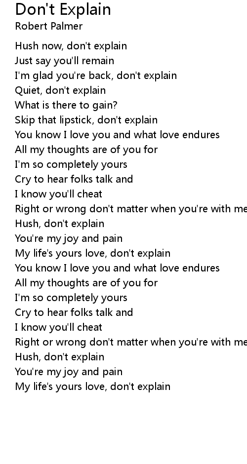 Hush now, don't explain |