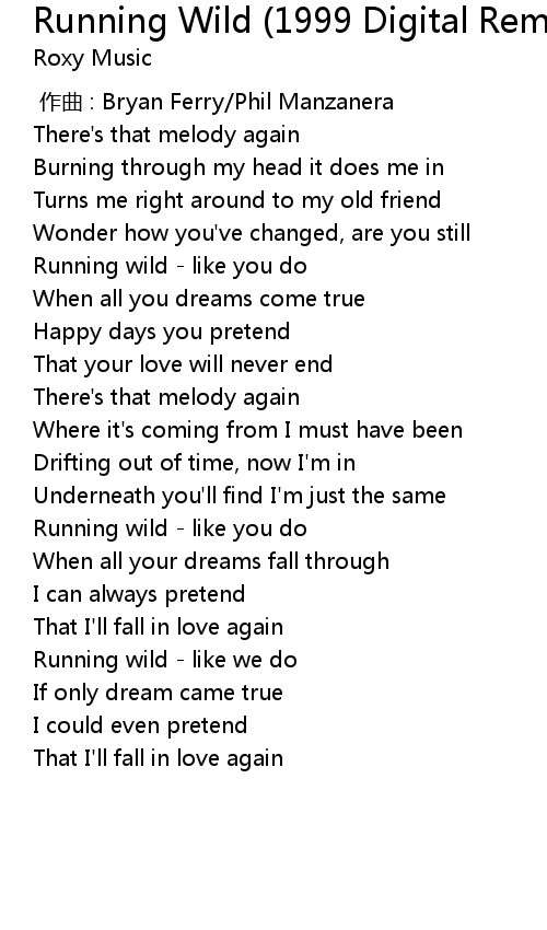 | [01:05.60] | Running wild - like you do |
