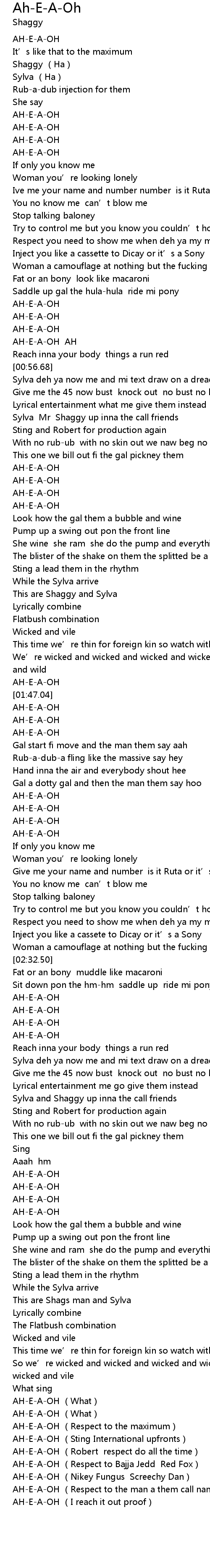 | [02:58.31] | Sylva and Shaggy up inna the call friends |