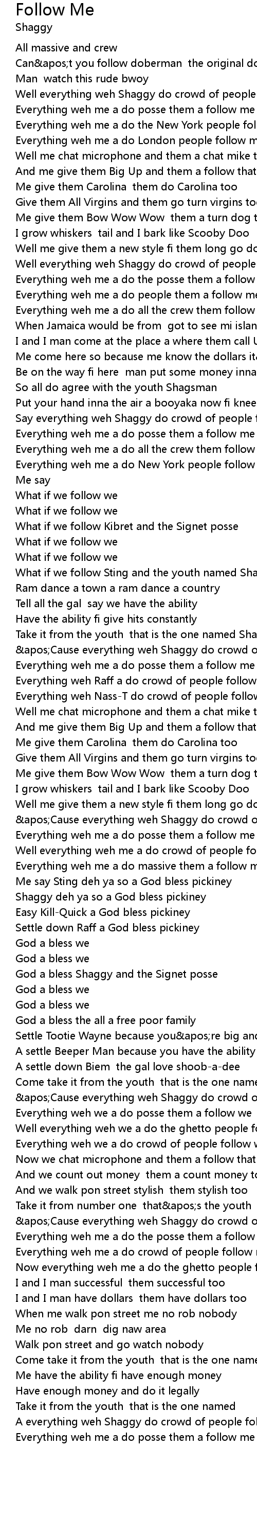 'Cause everything weh Shaggy do crowd of people follow me |