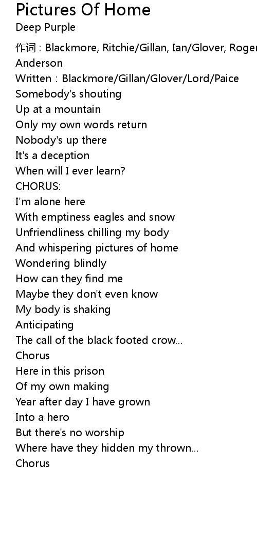 | 作词 : Blackmore, Ritchie/Gillan, Ian/Glover, Roger/Lord, Jon/Paice, Ian Anderson | |