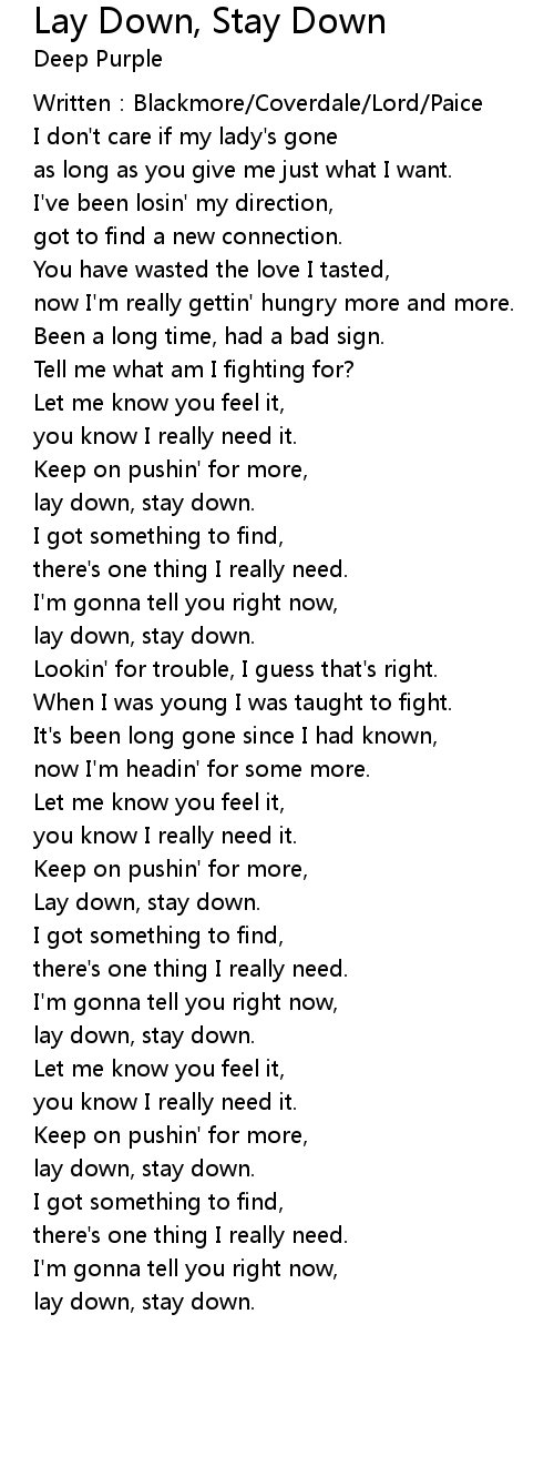 | Song | Lay Down, Stay Down |