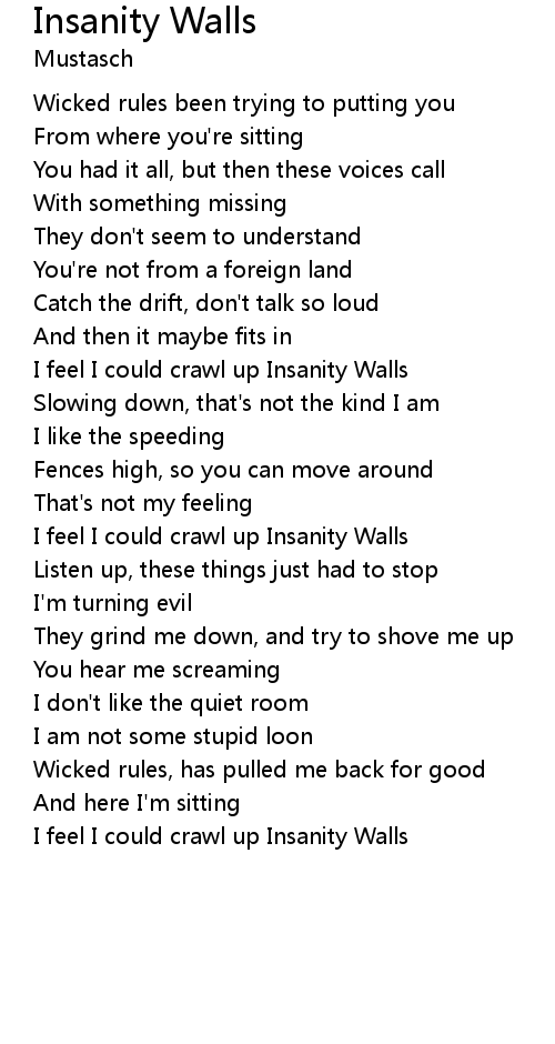 | I feel I could crawl up Insanity Walls |